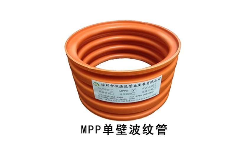 MPP單壁波紋管是以聚丙烯(MPP)為主要原材料,采用復合增強改性特殊配方和加工工藝制成的新型結構壁料管道,具有結構新穎、強度高、耐溫性能好、施工簡便和節(jié)省費用等一系列優(yōu)點。作為開挖用電力管的行業(yè)新品,MPP單壁波紋管解決了工藝成型困難和材料復合增改性等行業(yè)難點,創(chuàng)造性地設計了新穎的產品結構和紐扣式連接方式,因此,該項技術具有廣闊的應用前景。